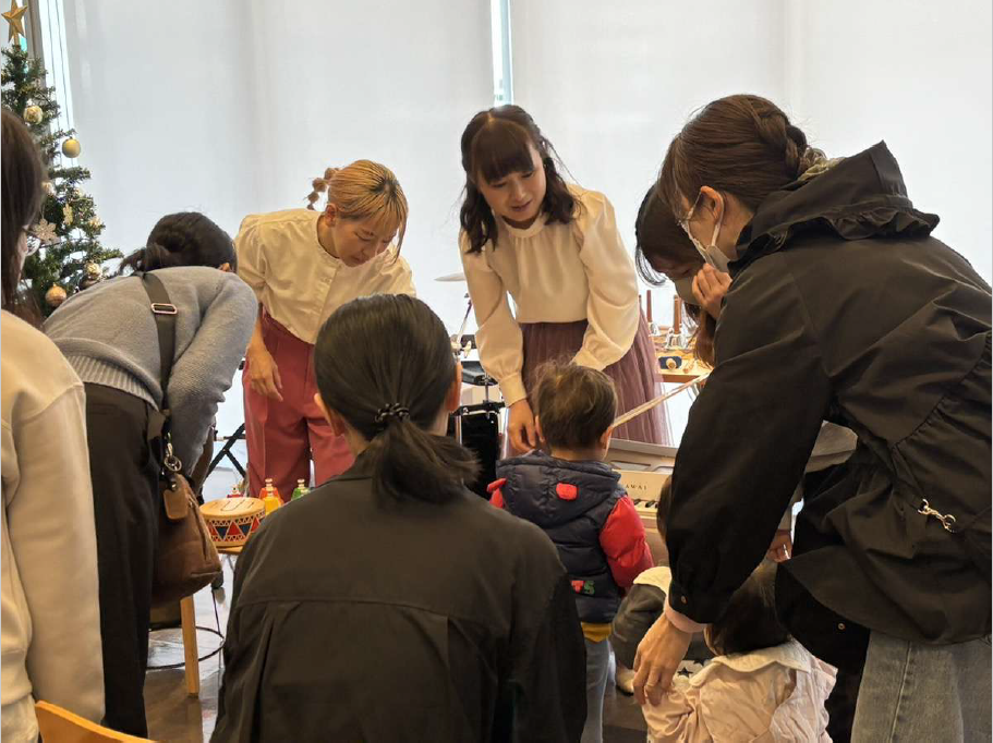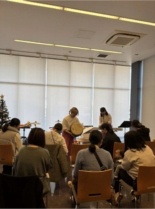 楽器に触れながらお子さんのリズム感や音楽感性を育む機会となりました。また、プロの生演奏を間近で聞いて楽しむことができました。